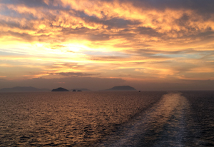 The Seto Inland Sea before reaching Kyushu / Distant silhouettes of islands near Suō-Ōshima |